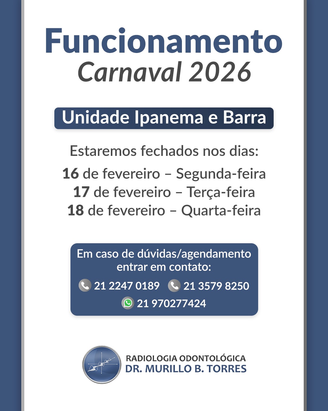 Há 50 anos dedicados exclusivamente à radiologia odontológica, a Murillo Torres é um serviço tradicional no Rio de janeiro e com grande experiência diagnóstica.
